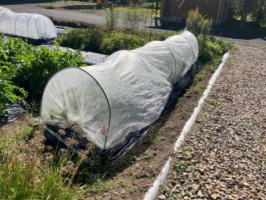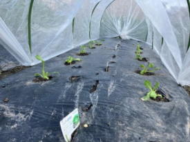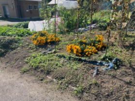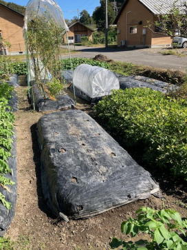 ![]() 玉ねぎ畝準備&白菜植付 ダイコン間引き ![]() マリーゴールド移動 高校の同窓会で鹿児島に帰省していた関係で、2週間近くここにきていなかった。畑は かなり様変わり。その中で、 11月上旬の玉ねぎの植付に向け、畝の準備。トマトのあとを深耕し、土つくり肥料を 入れた、来週は元肥を入れる。写真の上の不織布トンネルは、白菜苗を植えたもの、虫除 けのための不織布トンネル。 ダイコンは、約2週間経ち大きくなってたので、2本を1本に間引き。 スイカを植えていた畝、スイカ・メロンの間に植えていたコンパニオンプランツのマリ ーゴールド、2畝目の玉ねぎを植えるため、道路に面する畝に移動、うまく根付くといい のだが。 |