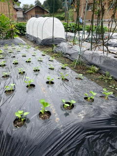 ![]() 2025十五夜 玉レタス植付 ![]() 3畝目のダイコン発芽 周囲土手の草刈り 10月6日は十五夜、雲一つない夜空に満月の月が東から上がってきた。大きい、明る い、綺麗、ウサギが餅をついている。 昨年の立派な玉レタスに味を占め、今年も苗を植えることに。この時期は、害虫がほと んどいなく、ナメクジも出ない、虫食いのない綺麗な玉レタスが収穫できる。30センチ 間隔に2列、合計12株植え付けた。綺麗な玉レタスを期待! 先週種まきした、3畝目の密集植えダイコン、全箇所うまく発芽した。来週は田舎の鹿 児島で高校の同窓会があるため来れないので、ちょっと早いが3本から2本に間引きし た。うまく育つことを祈る。 夏が過ぎてちょっと涼しくなると畑周りの土手は草ぼうぼう、草刈機で大掃除、刈った 草を積み上げているが、乾燥させて焼くと綺麗になる。今、2/3が終了、あと1/3。 |