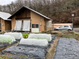 ![]() 中空ダイコン ダイコン2畝全収穫 ダイコン残りの1畝、他より2週間遅く種まき、密集植えしたもの。縦5本10列50 本。大きなものはなくそれなりの太さ、長さ。ただ、場所により、それなりのもの小さい ものが混在。昨年は16列種まきしたので小さいものばかりだったが、今年は上出来。1 5本ばかり収穫、満足な出来だった。株間25センチ10列ぐらいが適当なようだ。 今年はこれで来るのはおしまい、正月飾りと鏡餅を備えて、大掃除。 写真は帰る間際の畑・家の様子。 |