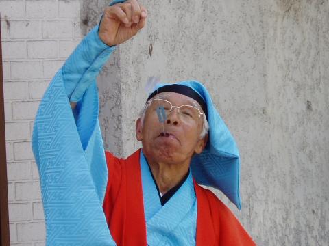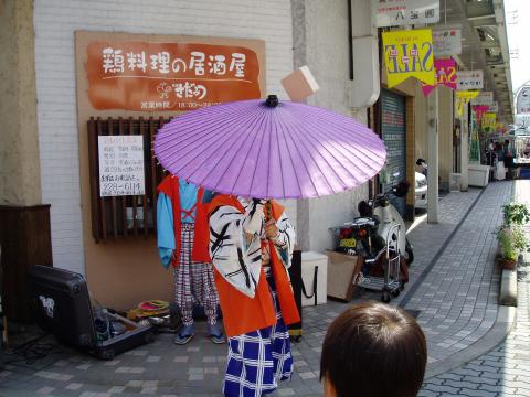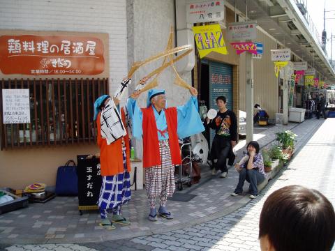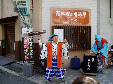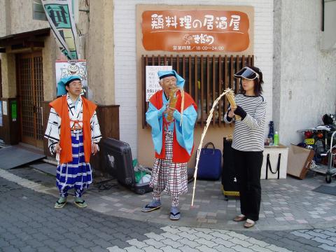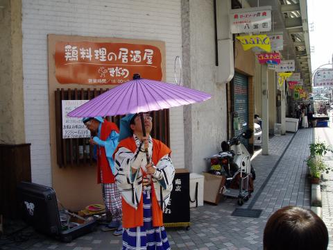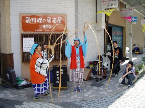 ふくやま大道芸2006スナップ(ふくやまのGONsan提供) 1.南京玉すだれ・鯉の滝昇り 2.傘回し(五合枡) 3.南京玉すだれ・富士の山と傘雲 4.お客様に南京玉すだれを体験してもらう 5.冨士谷氏の得意な「剃刀と糸を飲みこんで、繋げて取り出し」 6.傘回し(金の輪) 7.ご存知 指回し