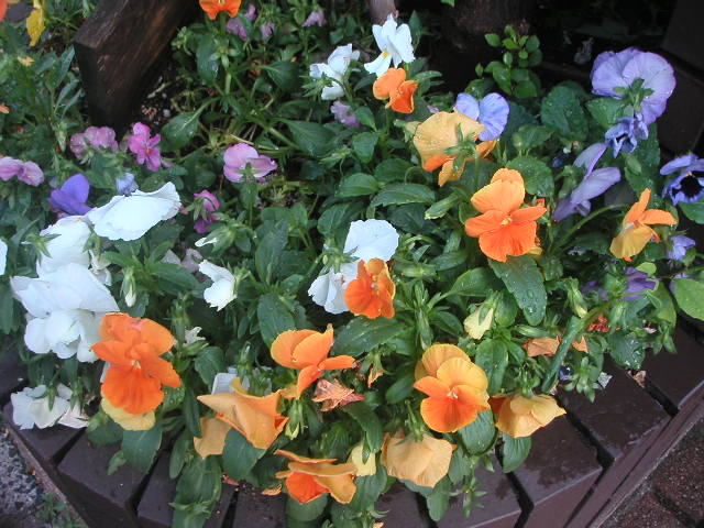 花壇のパンジーが