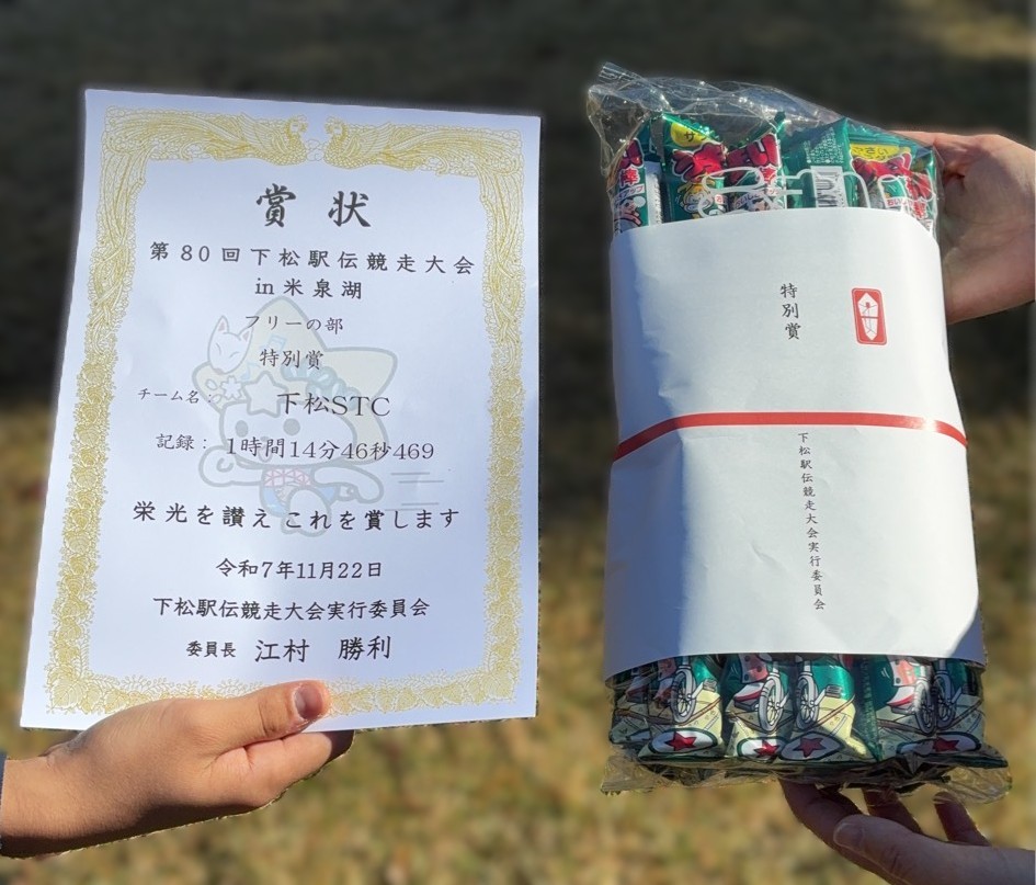 11月22日(土)に米泉湖で開催された下松駅伝競走大会に出走しました。 参加チーム数は28チーム。中学生チームは下松STCの1チームだけでした。 1区間3kmを5人が周回するレースです。 下松STCの全体順位は17位。 最初は不安がっていた走者も走り始めるといつも以上の力を発揮し次走者へ! 走り終わった後は爽快な感じで来年も出るぞ!と張り切っていました。 走者の皆さん お疲れさまでした。 また、応援に来られた方も力強い声援ありがとうございました。