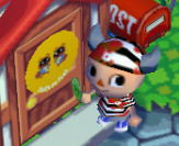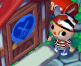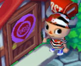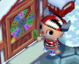 | クラブニンテンドーの どうぶつの森ネームプレートを そのままドア用にデザイン♪ こだわり派の人は キューブと屋根の色もそろえると良いかも。 |