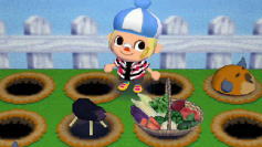 さて んじゃ 最近の森の生活を 紹介するぞ こないだ 任天堂からナスビ おうかからは やさいのバスケットが とどいて 急に 部屋が野菜づくしになったよ♪ |