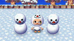でも e+のコロとちがって 街森には通信があるし 上の写真の状態から さらに両はしに ゆきだるまぼうしで フレンドに立ってもらえば 5ゆきだるまの 写真が撮れるぞ! と思って その日は休日だったし 開門してたんだけど だれも来てくれなかったよ‥ |