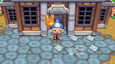 立ち位置にもどったら カメラが上下しないよう スティックやポインタ操作で 正面はむかずに 十字キーで持ち物を 持ちかえて 正面をむいてくれ♪ 持ち物画面とかは ゼッタイ開かないよーに! |