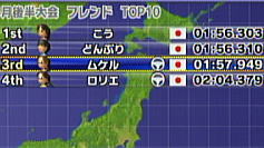 んな リキまなくても‥ ところで 4月後半の マリオカートの大会が 全車線逆走の ムーンリッジハイウェイという デンジャラスな大会だと 聞いたんで オレも参加してみたよ♪ 気になるフレンドランキングは‥ |