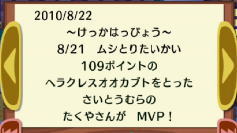それでは とりあえず 8月の ムシとり大会の結果から♪ 霧隠れ村では ヘラクレスオオカブトで |