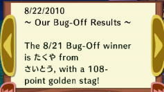 今年の ムシとり大会は あとは 9月の1回だけなので ムシとりでの 英語メールを狙ってる人は がんばってみてくださいね! |