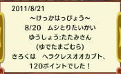 ビミョ〜な ジンクスだなぁ‥ まぁ こんなジンクスで よければ 週末の夜とか ワリと村開けてるんで 遊びに来てくれ♪ |