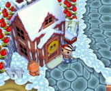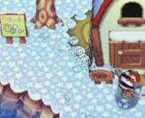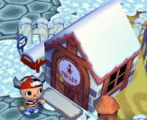んで、 ここがオレんち♪ ドアに貼ってある どうぶつの森プレートは 残念ながら 実物は手に入れらんなかったよ‥ |