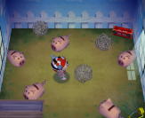 2階は以前は ハロウィンシリーズだったんだけど、 クリスマスむらに 刺激を受けてからは ブタを飼うようになったよ♪ |