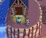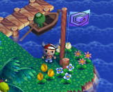 んで ここがゆうたのリゾートじま。 島にまで 任天堂に忠誠を誓うかのように キューブマークのはたが かかげられている。 |