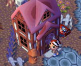 ここが今回招待してくれた よしこん家だよ。 ピンクの屋根に ドアにはハートのデザインと、 家全体から 凄まじい女の子オーラが‥!! |