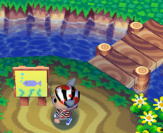 おっと あんな高いトコロに アニマルむら第1村人の ブイヨン発見! |