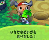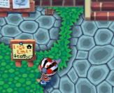さっそく外へくり出すと、 むらのアチコチに ベル袋カンバンが‥ こんなの作ってるあいだに 金のスコップで穴掘れよ(笑) |