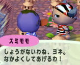 ピロリンむらの 第1村人はスミモモ。 しょうがないながらも なかよくしてもらえるコトに(笑) |