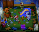 んで、 ここが招待してくれたヒロん家。 他の3軒にも人が住んでんだけど どれも2階建てで コンプリート・オブジェもフル装備、 スゲェ‥ |