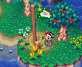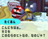 外に出ると たくあん発見! クリスマスむらの 第1村人なのじゃ! |