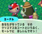 島に住んでるのは 背中のリュックがカワイイヨーデル。 クリスマスなコートを 欲しがるなんて、 1人でくらしてるヨーデルも やっぱクリスマスしたいのな(笑) |